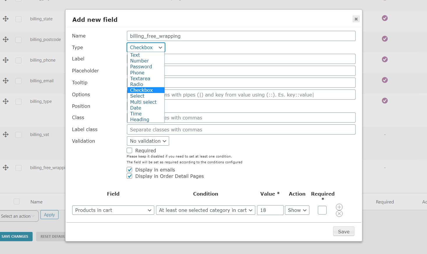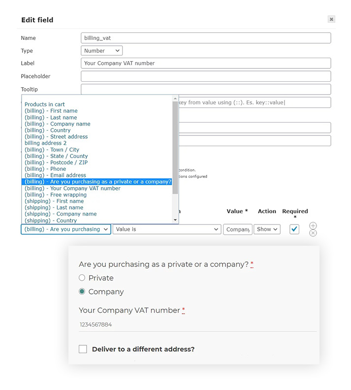 Mostra o nascondi alcuni dei campi in base ai prodotti o le categorie nel carrello oppure in base a cosa l’utente ha selezionato in altri campi del checkout