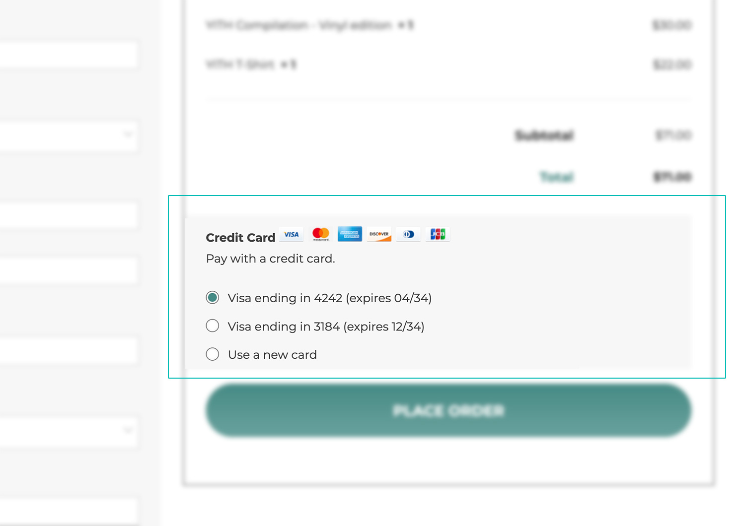 Abilita l’opzione per mostrare le carte di credito associate all’account del tuo cliente così da velocizzare e semplificare il processo di pagamento.