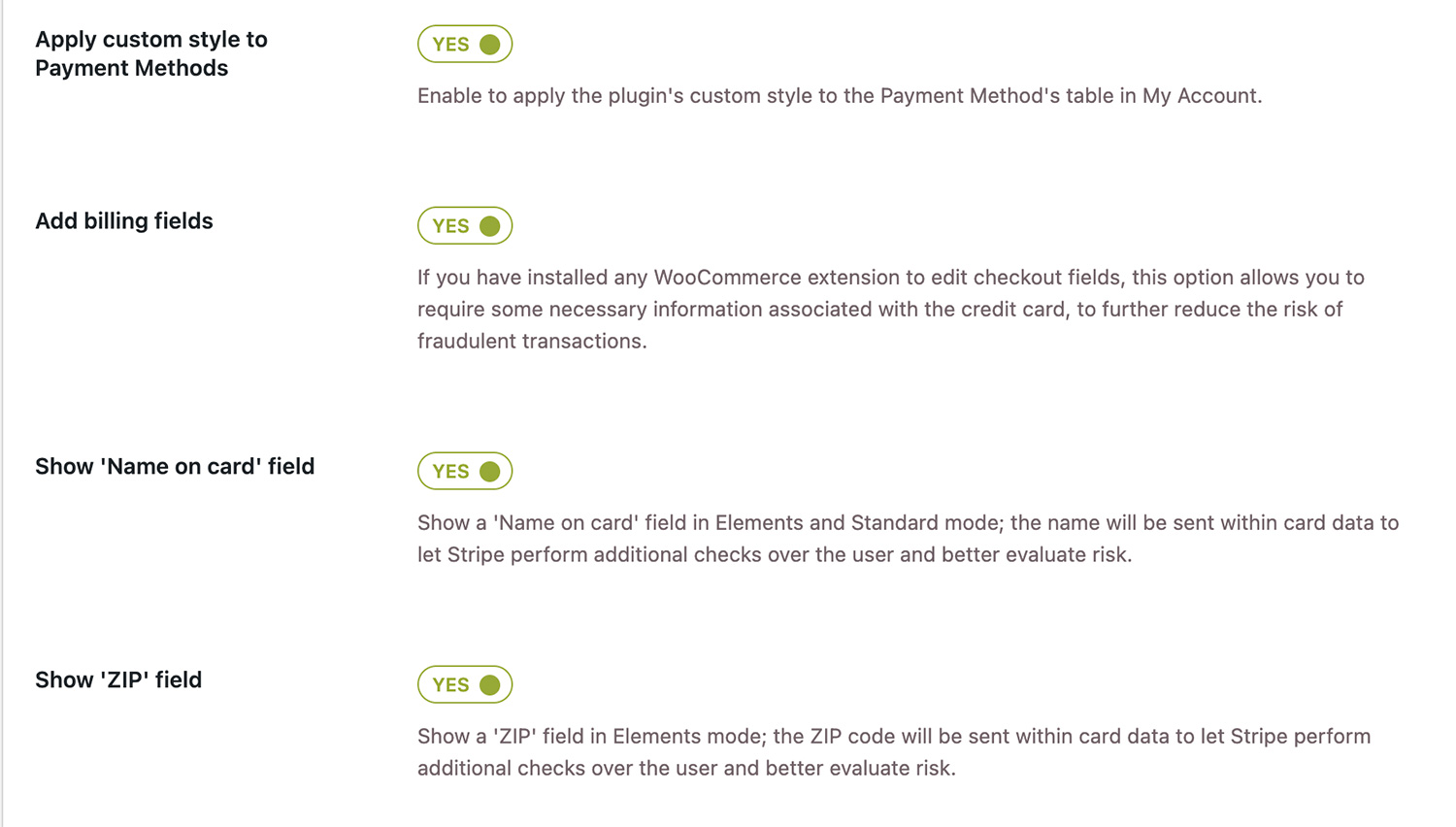 Il plugin ti permette di scegliere tre diversi stili del form per l’inserimento dei dati della carta di credito: Standard (l’utente dovrà inserire i dati della carta di credito direttamente nella tua pagina Checkout), Elements (i dati della carta di credito saranno inseriti nel modulo embedded di Stripe Elements interamente gestito dal gateway) o la modalità “Stripe checkout”, con cui reindirizzare i tuoi clienti alla pagina di pagamento ospitata direttamente su Stripe.
