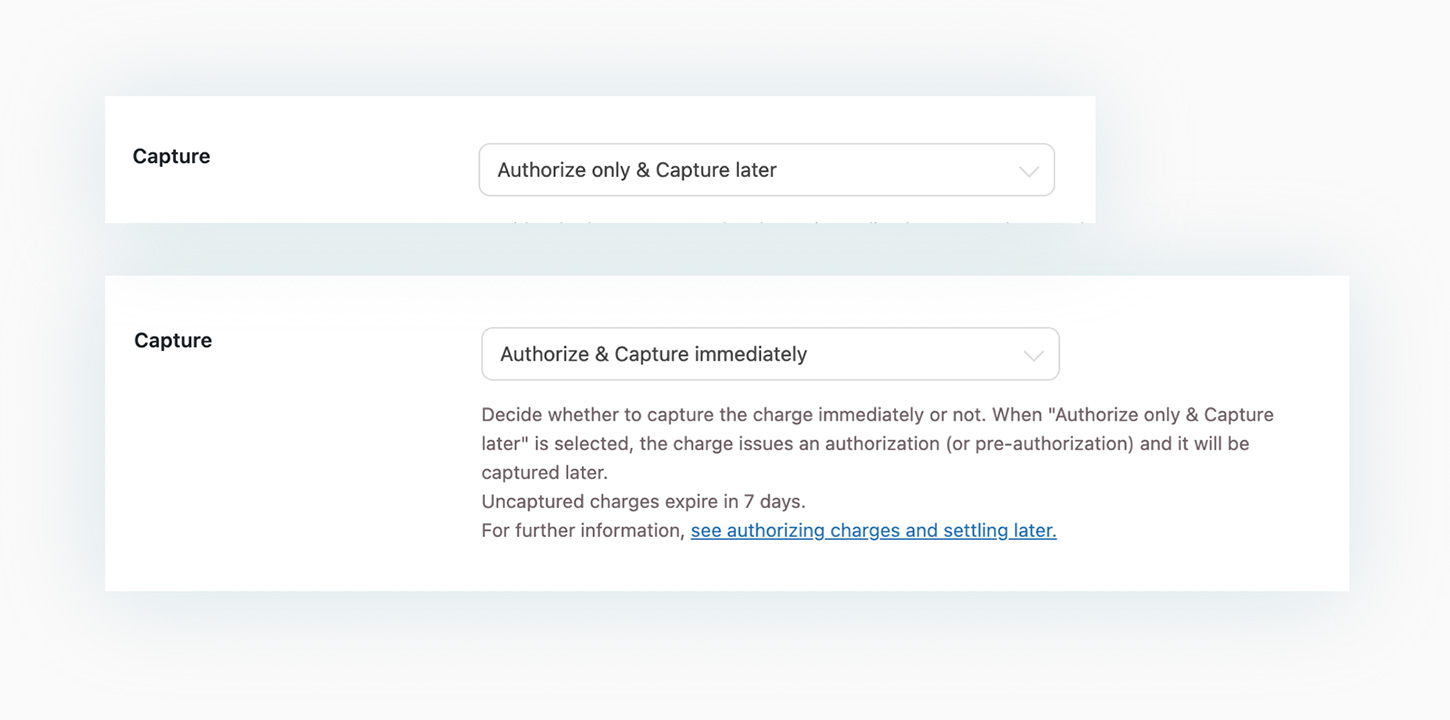 Scegli se addebitare immediatamente o se richiedere solo l’autorizzazione e addebitare successivamente