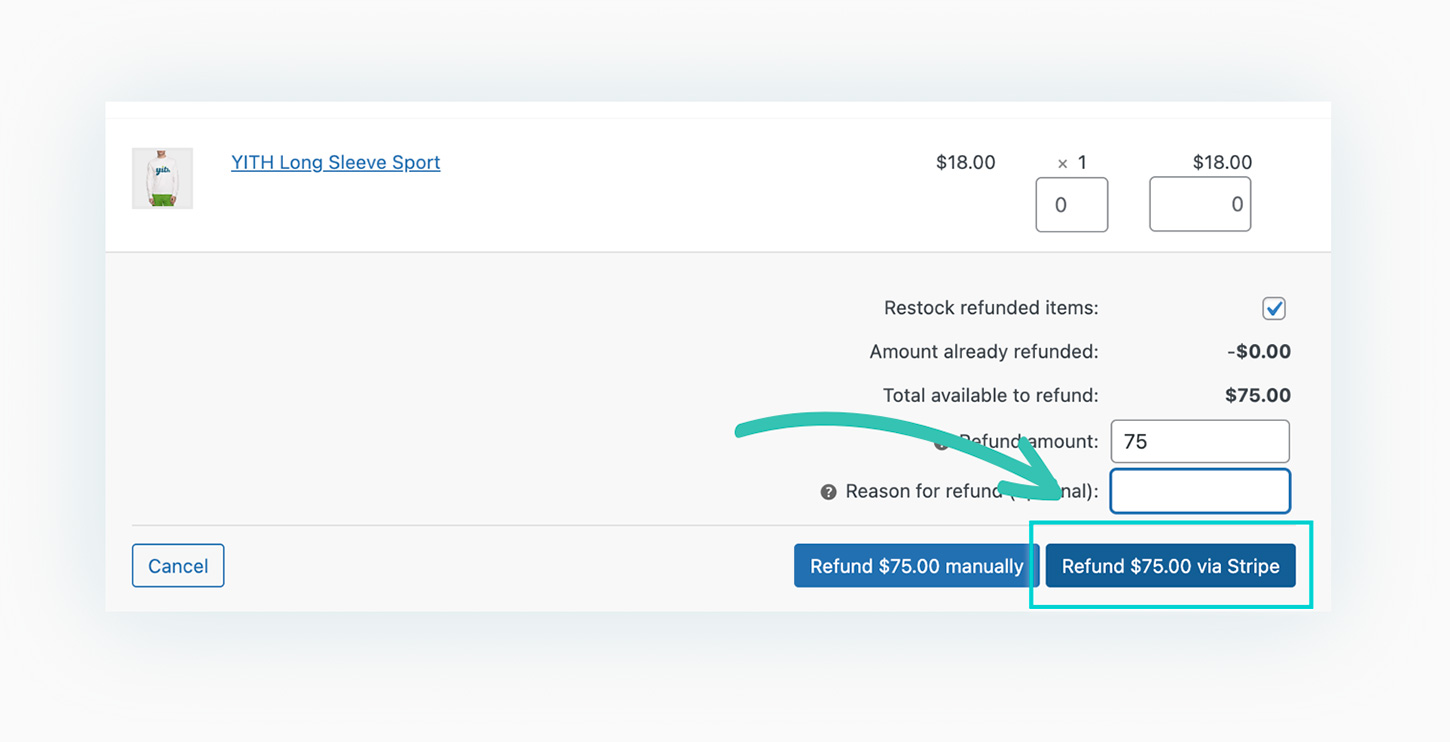 Esegui delle azioni sui pagamenti (es. rimborsi o annullamenti) dal tuo account Stripe e le informazioni relative a questi procedimenti verranno automaticamente aggiornate nel tuo shop.