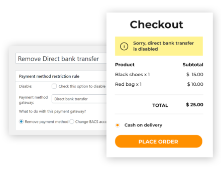 Potrai, ad esempio, consentire i pagamenti con la carta di credito solo per tutti quegli ordini che superano un determinato importo o escludere i pagamenti con PayPal per alcuni prodotti. Potrai anche inserire diverse banche per i pagamenti effettuati con bonifico e associarle a prodotti diversi.