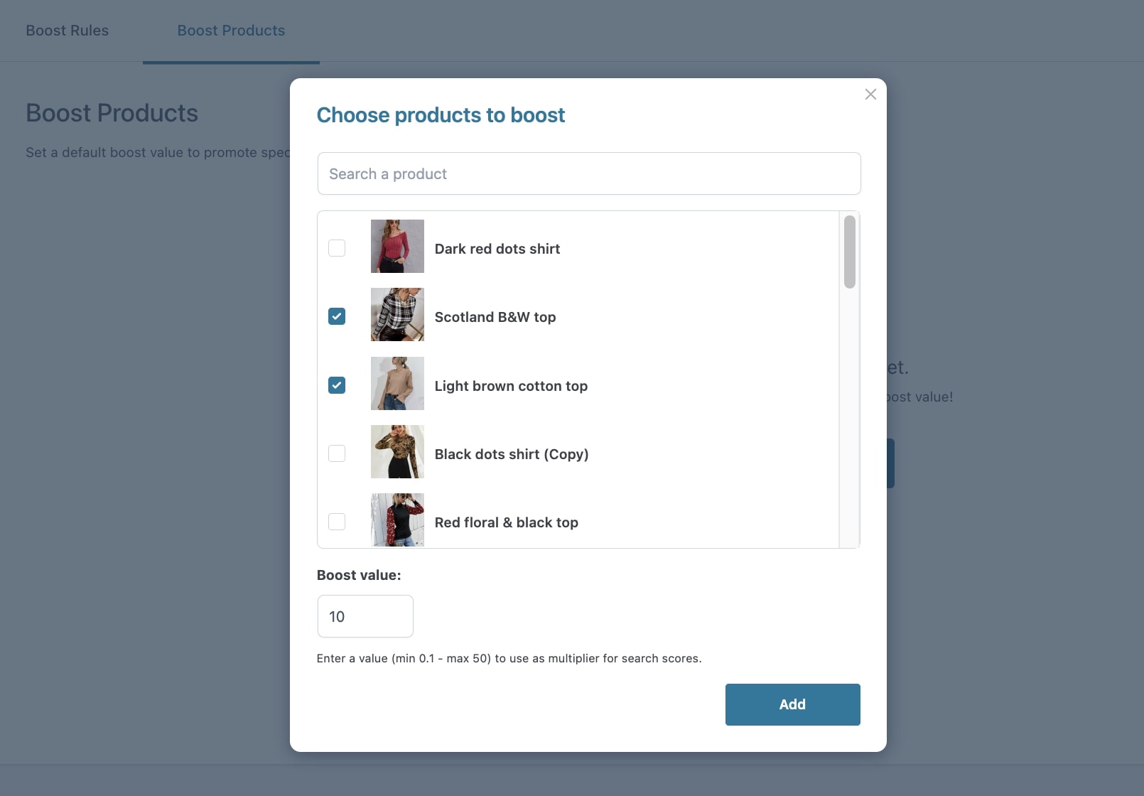Want to increase the visibility of some products or categories in search results? Use boost rules to prioritize certain products based on specific search criteria. For instance, you can show the newest iPhone and Huawei models among the first results when a user searches for the “smartphones” category. Additionally, in the dedicated boost products section, you can target specific products and ensure they are always shown at the top of the search results.