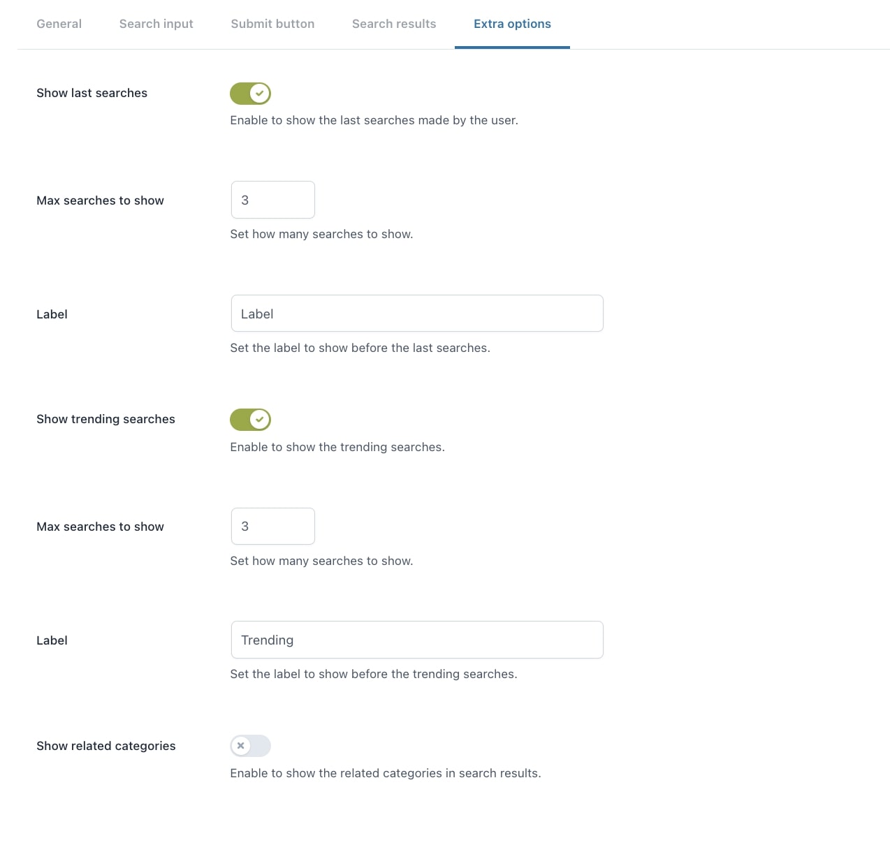 A usability twist that your customers will love: if you enable the dedicated option, your users will be able to see their search history. They won’t have to struggle to remember what keyword got them to the product they liked so much, or manually enter the text again: just one click and they will access the same search results as in their previous search.