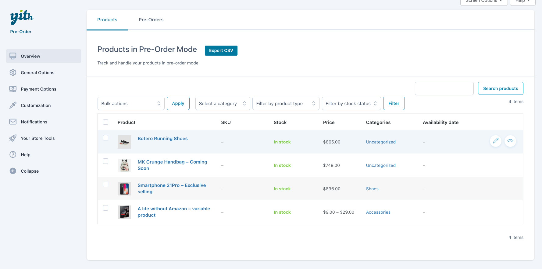 TERRIBLE supportSupport for this plugin is terrible. We have had an issue with this plugin not charging the customer when the pre-order is available, and have not heard anything from YITH in 10 days - except "Be patient". Meanwhile, we lose money.