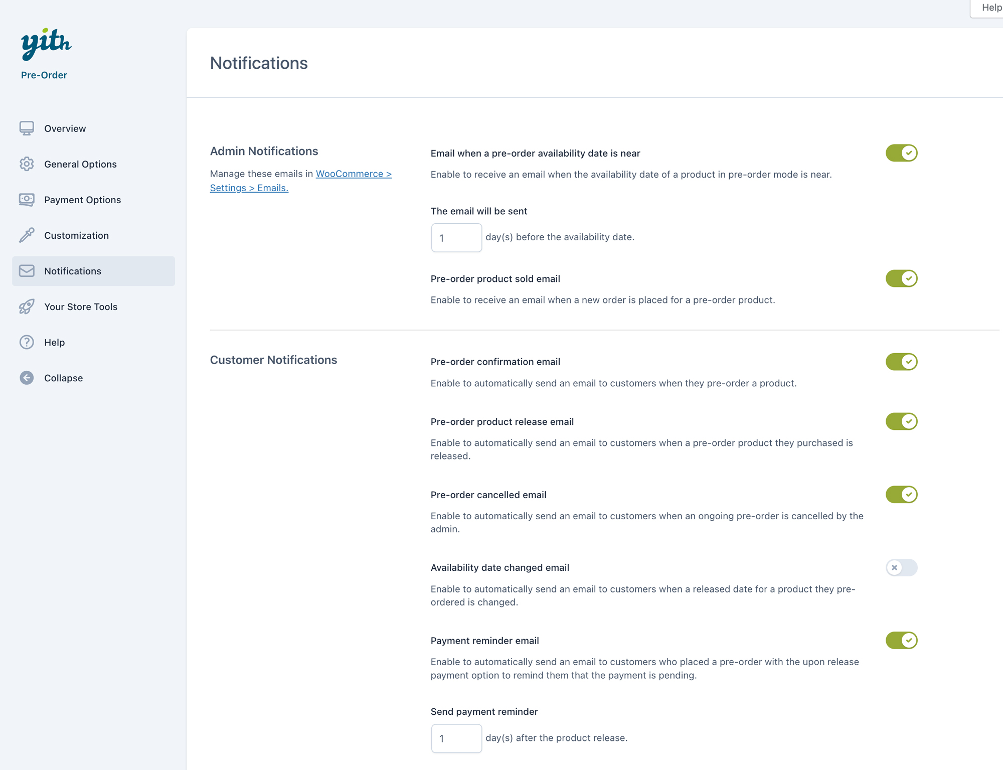 Envía automáticamente correos electrónicos a los clientes para confirmar el pedido de precompra y mantenerlos actualizados sobre la fecha de disponibilidad y el estado del pedido. El plugin también proporciona varias notificaciones para que el administrador pueda gestionar fácilmente pedidos y productos de precompra.